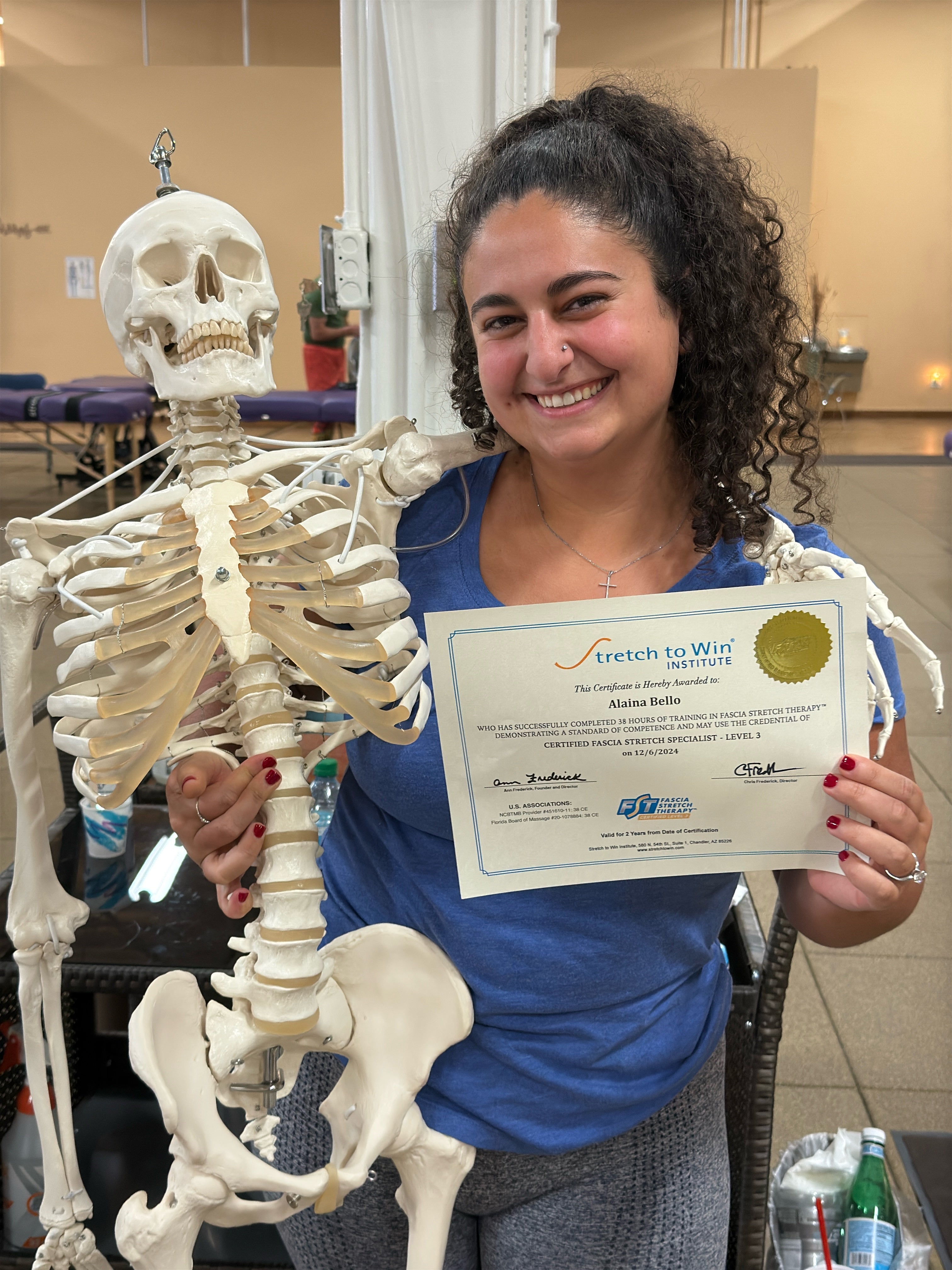 Hi, I’m Alaina, the founder of FlexiBello and a certified Fascia Stretch Practitioner with a lifelong passion for movement and performance. My journey began in sports back in school. Basketball, track, and competitive swimming shaped who I am and taught me the value of discipline, strength, and recovery. After competing for 15 years, I became a personal trainer and discovered a deep love for fitness and weightlifting. I even competed in a powerlifting competition and proudly took first place in my weight class!